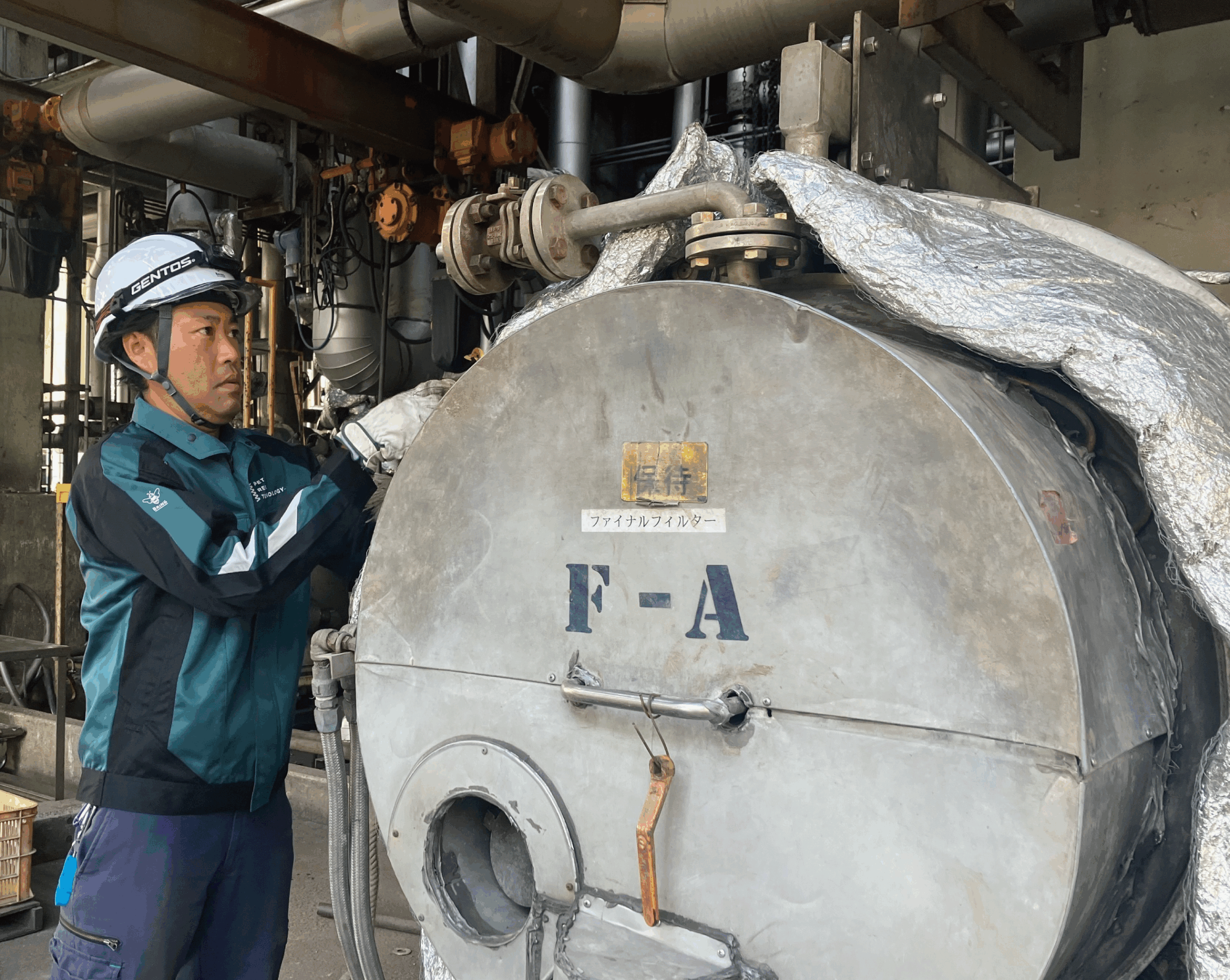 トラブルが発生した際は、瞬時に解決策を導き出すことは難しいこともありますが、チームや他部署と密に連携し、協力しながら解決しています。他社にはないケミカルリサイクルという技術を用いて、PETボトルの循環型社会を実現し、環境に優しいものづくりで社会を支えていることに大きなやりがいを感じています。安全かつ安定的に運転できるよう、日々挑戦を続けています。