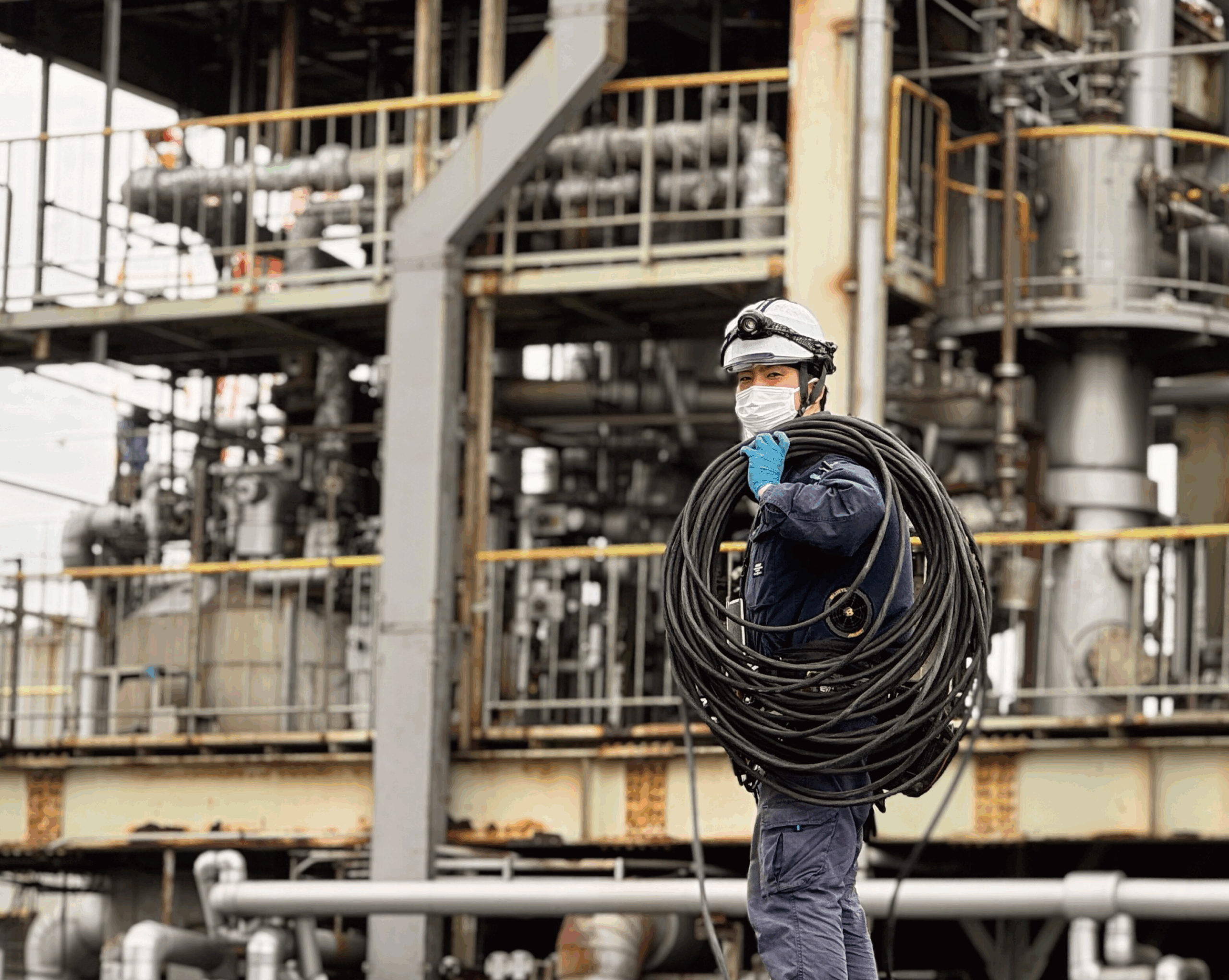 設備部のなかで、主に電気にかかわる分野を担当しています。電気はプラントを稼働する上で欠かせないエネルギーですが、一方で、扱いを誤ると大きな事故につながる危険を常に伴っています。そのため、トラブルが発生しない環境をつくることはもちろん、万一トラブルが起きた際には、ただ復旧するだけでなく、原因を追及して対策していくことが重要になります。部署の人数も決して多くはないため、協力業者との連携も非常に重要となりますが、優秀な職人さんたちのおかげで様々な意見を出しあいながら日々業務を遂行できています。最近では、私が居なくても問題なく業務が進むよう、後輩や協力業者の若手職人の育成にも励んでいます。